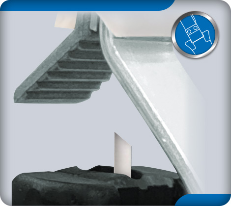 Οι λεπίδες του περιστροφικού απογυμνωτή καλωδίων είναι κατασκευασμένες από ειδικά επεξεργασμένο χάλυβα υψηλής ποιότητας (Messerstahl Solingen), συνδυάζοντας υψηλή αντοχή κα ακρίβεια.